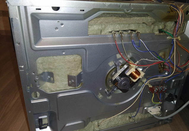 Проводка внутри духового шкафа проходит через несколько зон с разной температурой. При высоких нагрузках контакты иногда теряют стабильность. Могут появляться микротрещины на пайке. Прибор продолжает работать, но вентилятор реагирует на малейшие скачки тока. Иногда это сопровождается едва заметным мерцанием подсветки. Если такие симптомы присутствуют, стоит внимательно осмотреть проводку и проверить площадки, где подключены провода.